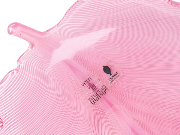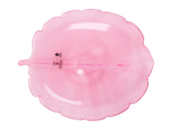 HALF-FILIGREE GLASS LEAF IN SHADES OF PINK, 20th century