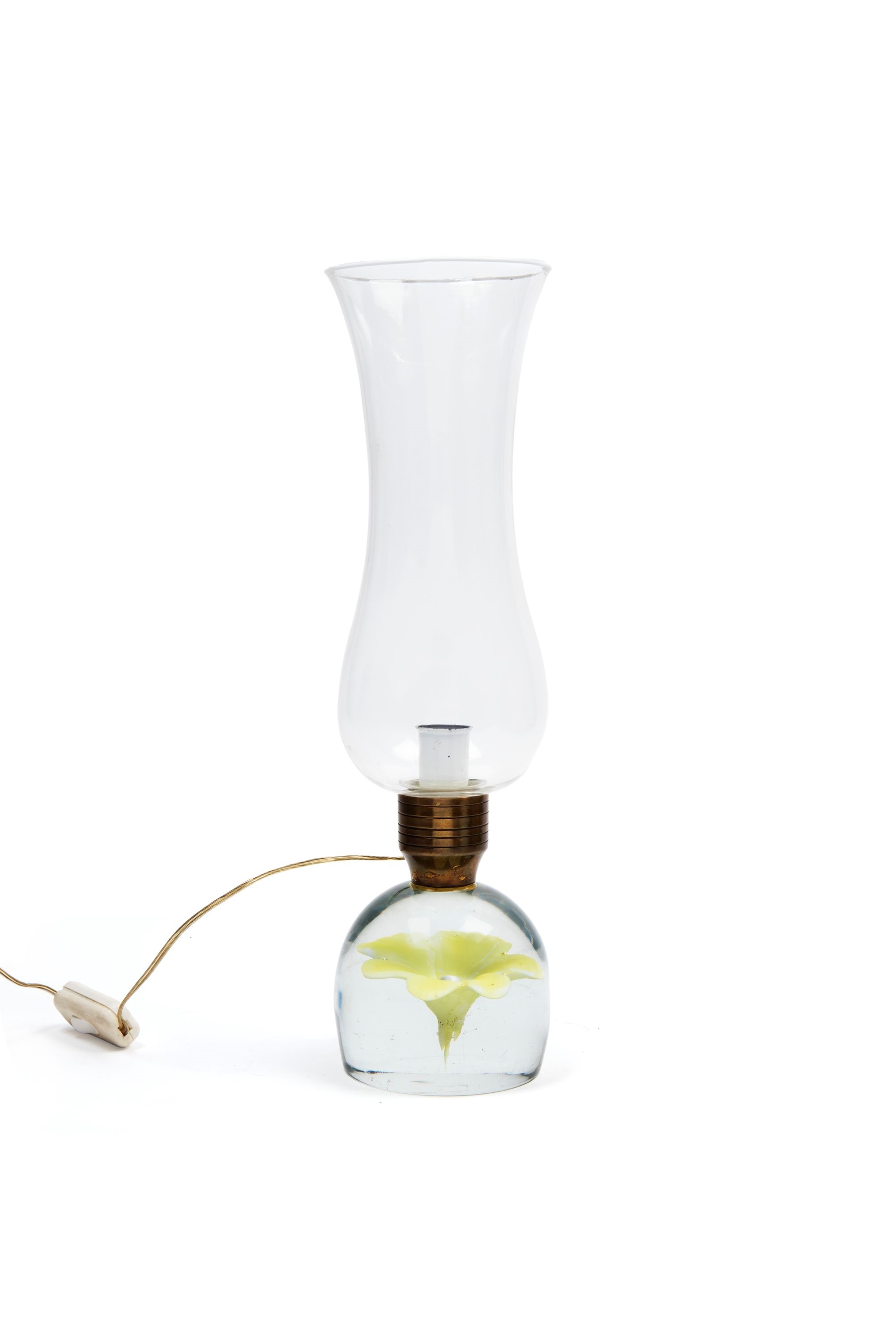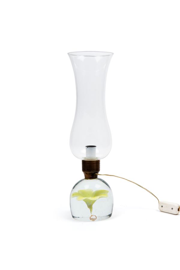 MURANO GLASS TABLE LAMP WITH APPLIED FLOWER, 1960s