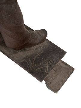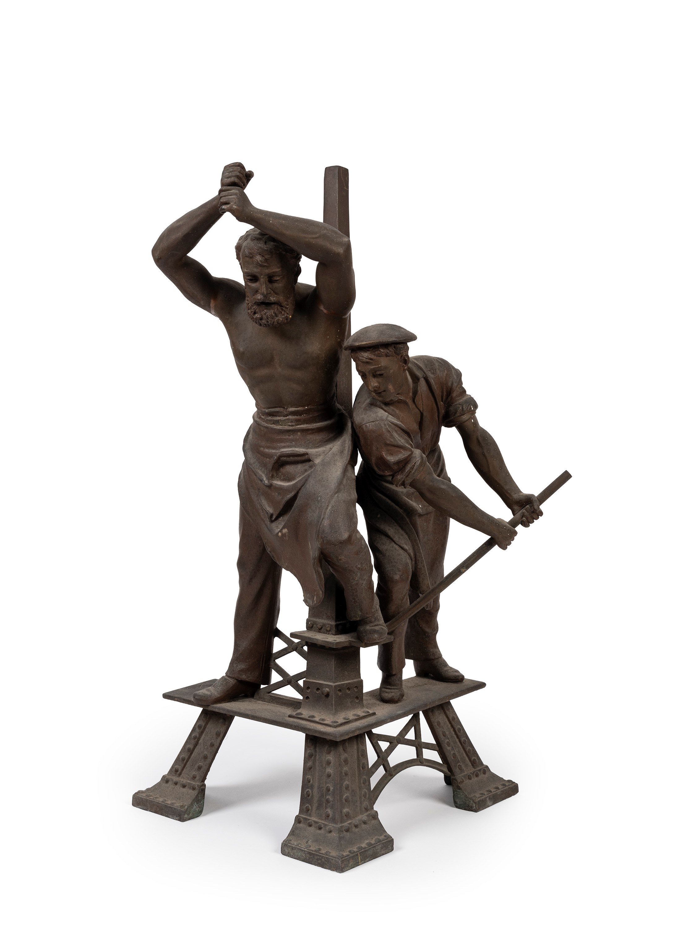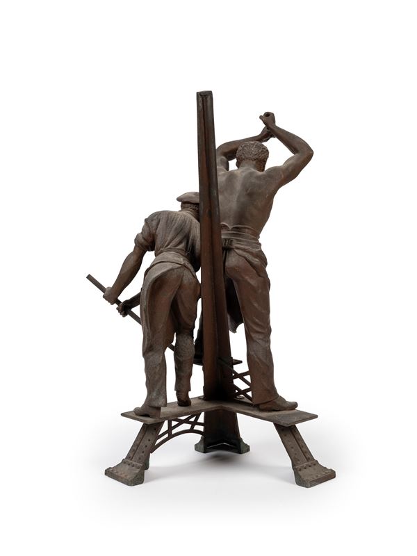 An antimony sculpture, with a structure modeled on the Eiffel Tower, signed Waagen.