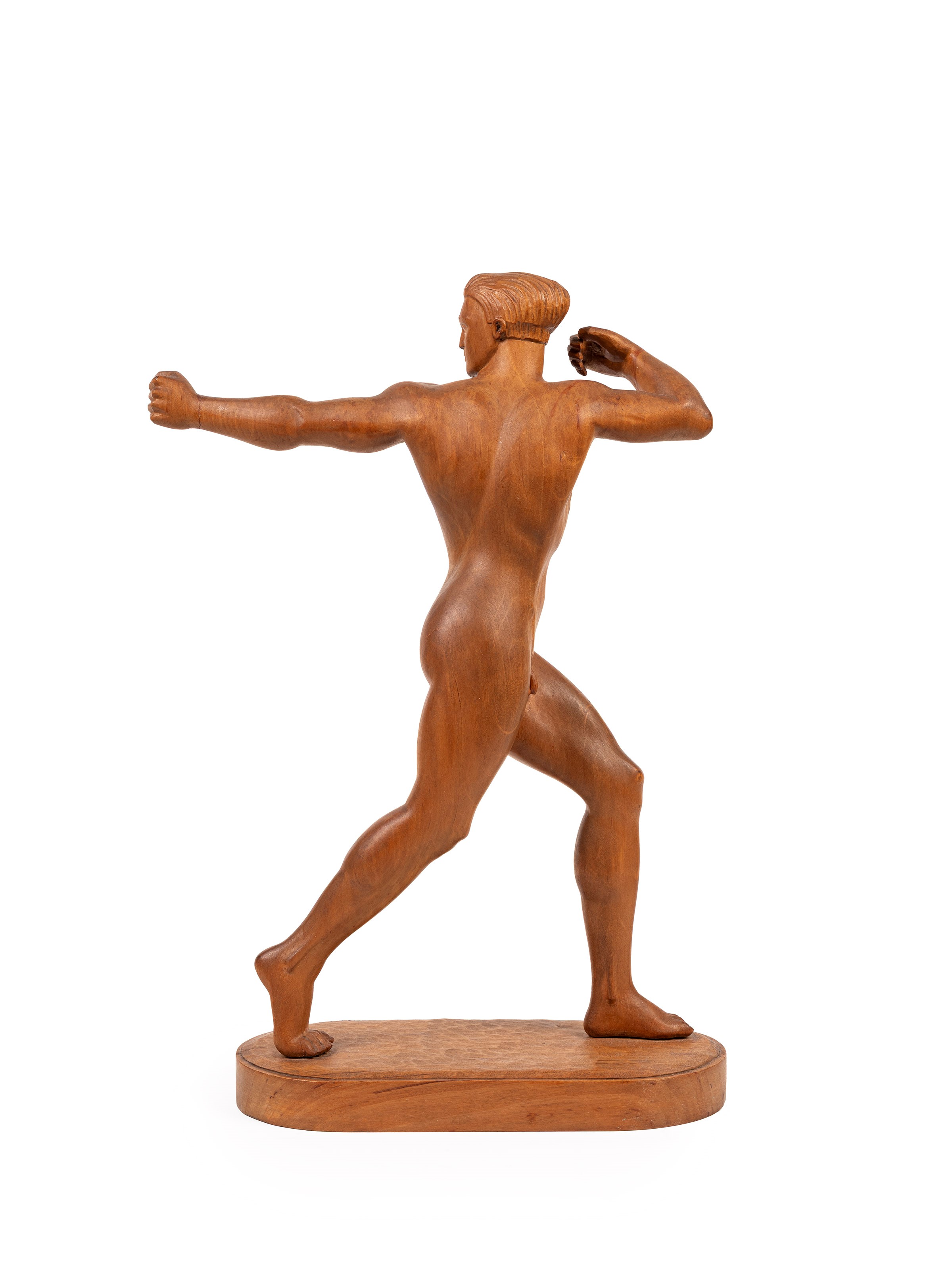 WOODEN SCULPTURE DEPICTING AN ATHLETE, 20th century