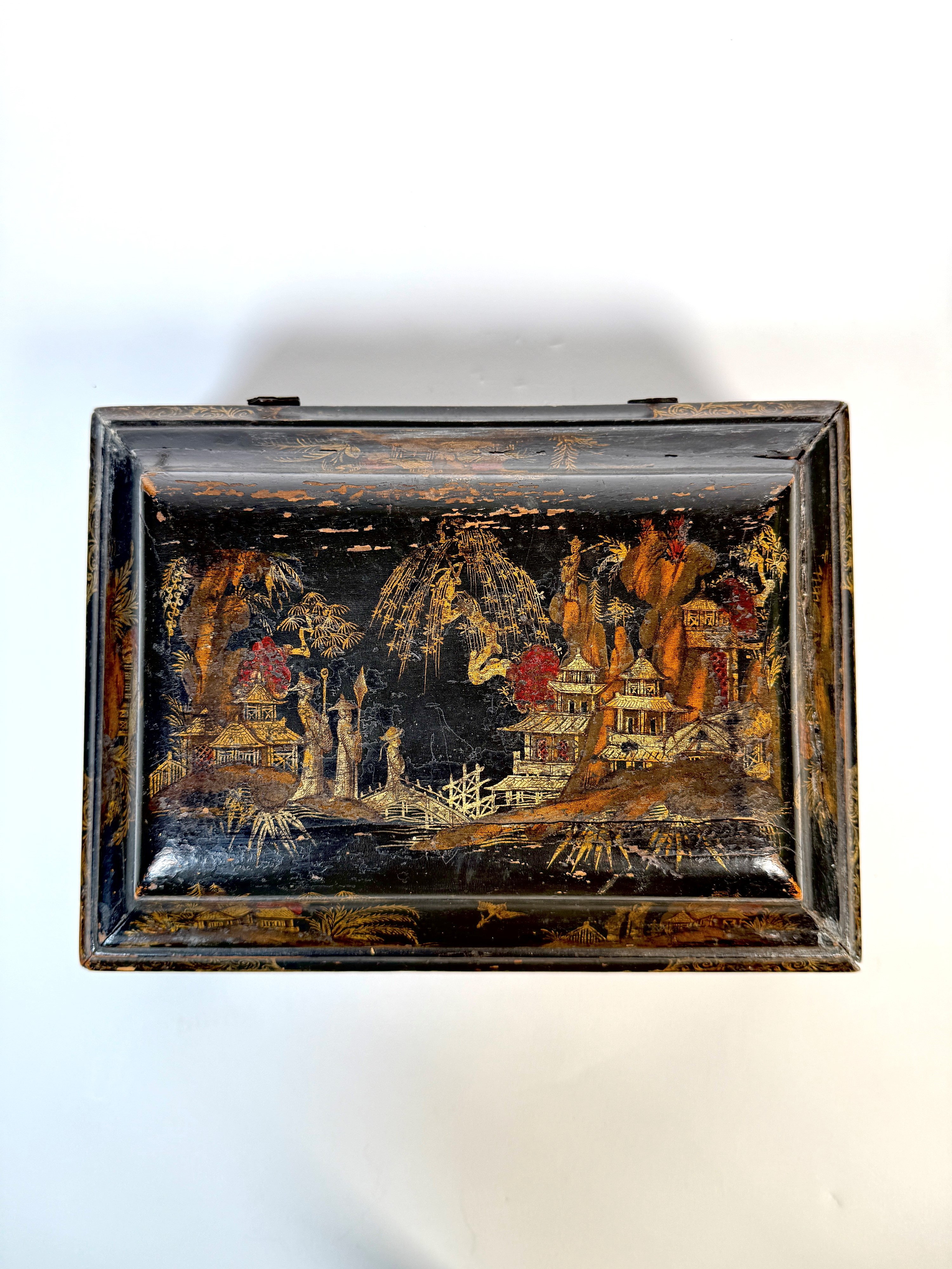 BLACK LACQUERED CASKET DECORATED IN CHINOISERIE, 19th century