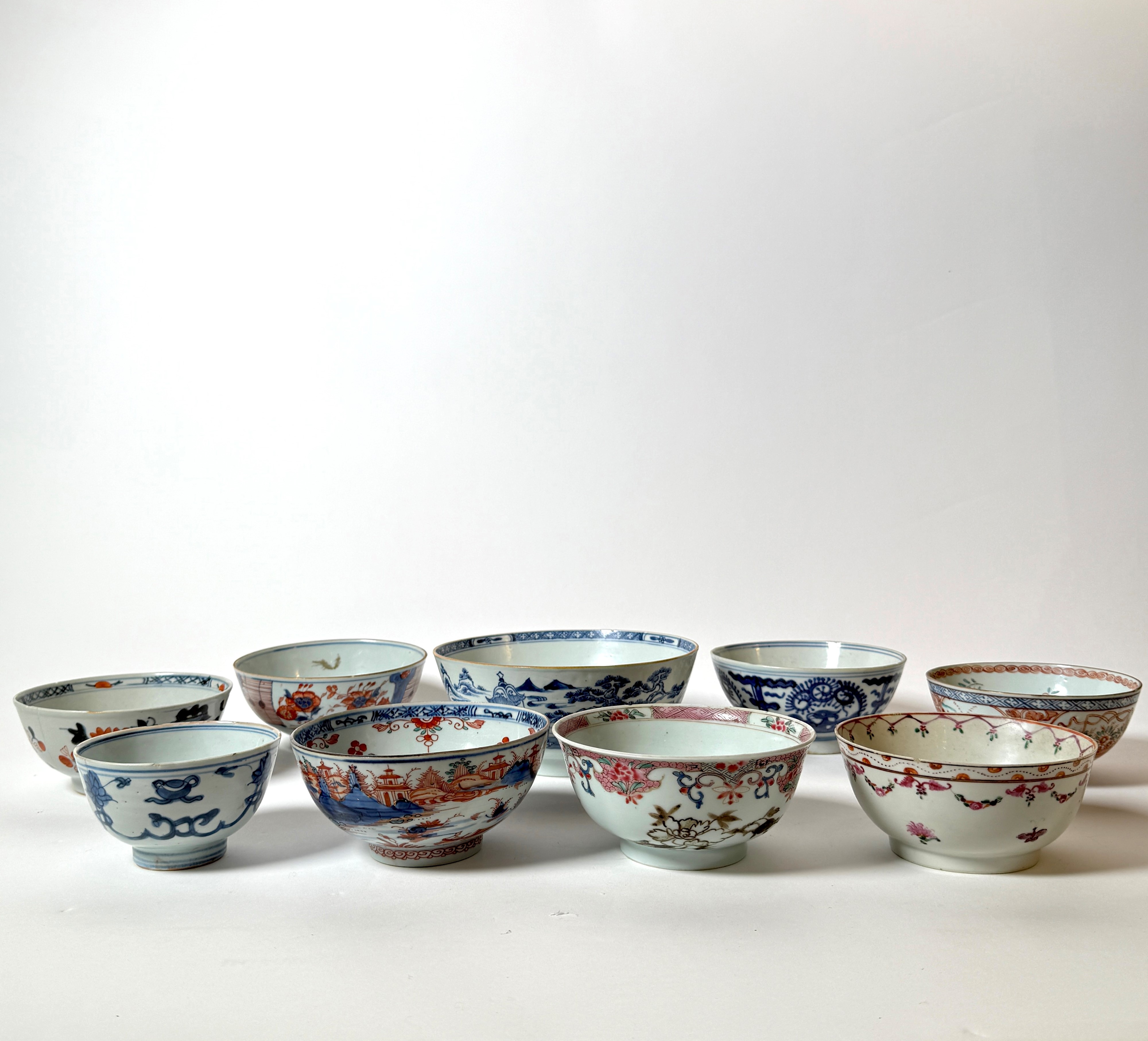 NINE PORCELAIN BOWLS, China, Qing dynasty, 18th / 19th century