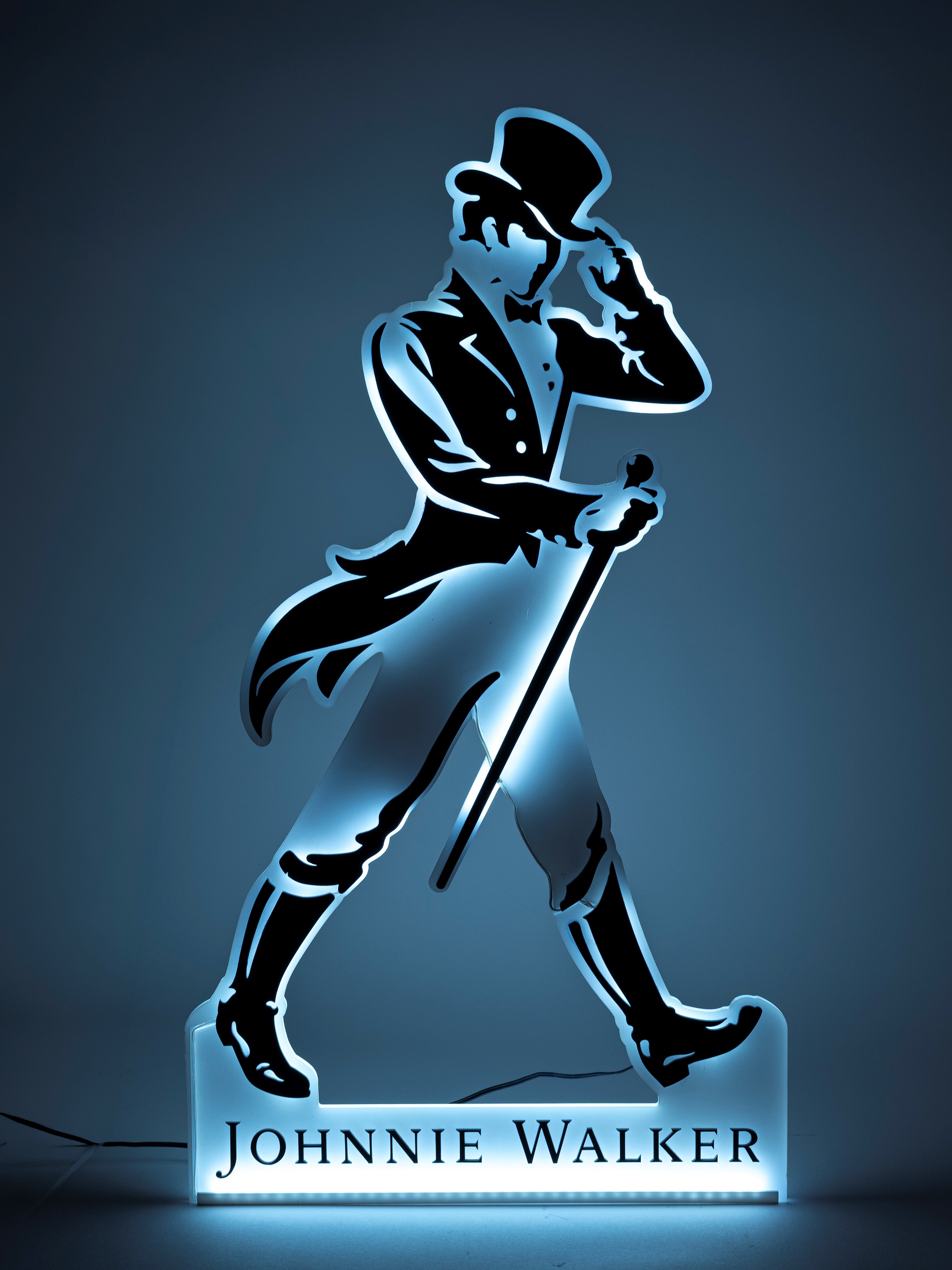 A JOHNNIE WALKER WHISKY LIGHTED ADVERTISING SIGN