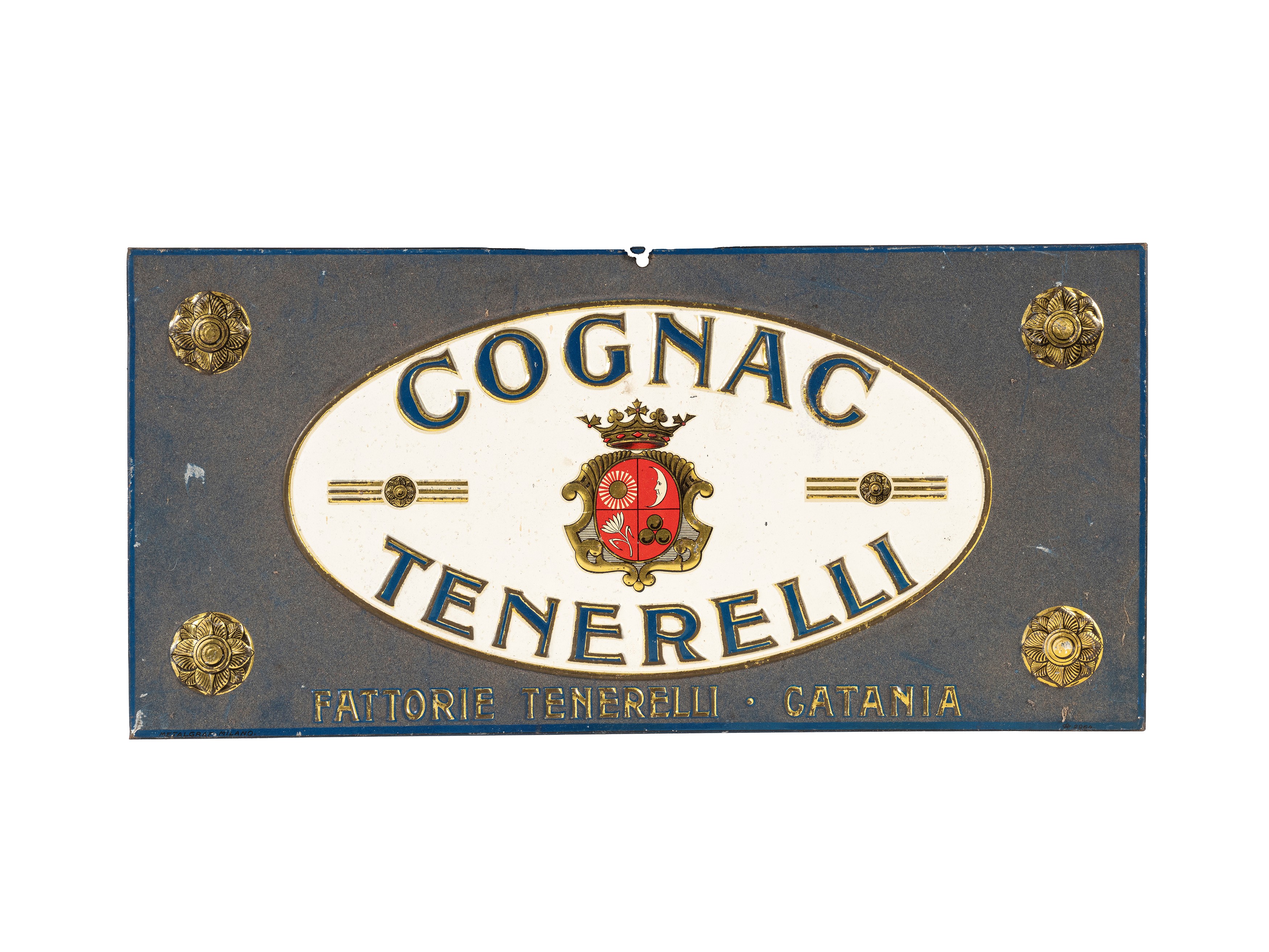 Fattorie Tenerelli Catania. Sign with raised lettering. Made of metal.