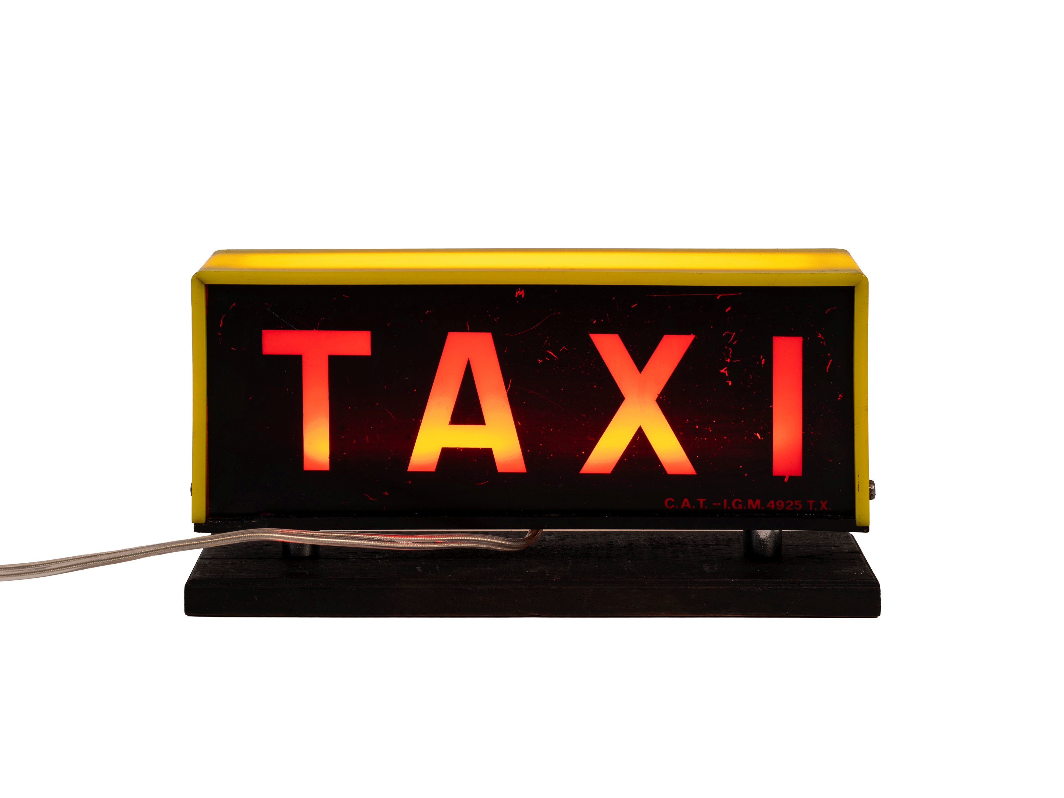 DOUBLE-SIDED ILLUMINATED ADVERTISING SIGN ON A WOODEN BASE FOR TAXIS