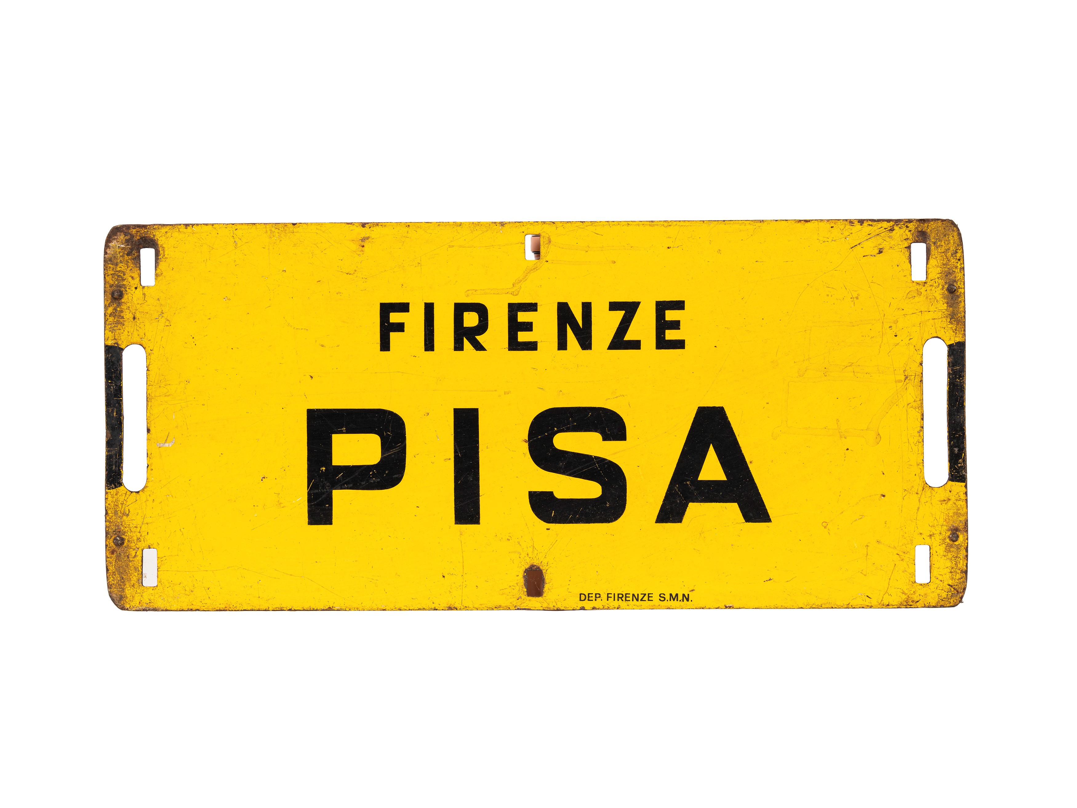1960s metal sign. Double-sided: side 1 destination Pisa–Florence, side 2 Florence–Pisa.